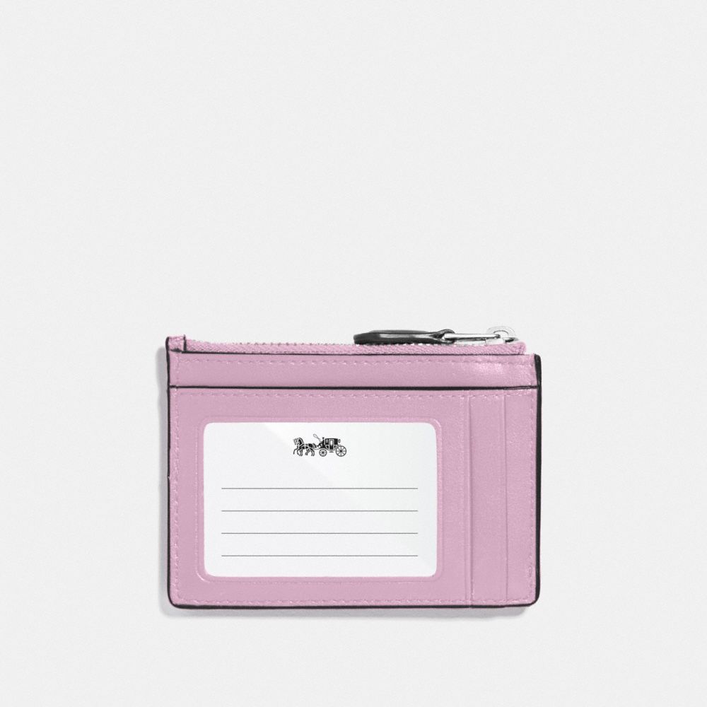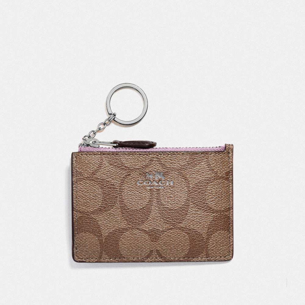 Signature coated canvas| Credit card slot and ID window| Zip-top closure, fabric lining| Attached split key ring| 4 1/4" (L) x 3" (H) x 1/2" (W)