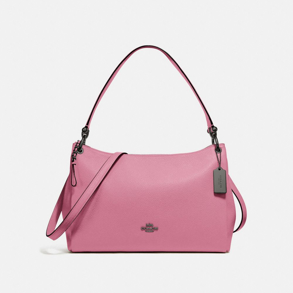 Refined pebble leather| Inside multifunction pocket| Zip-top closure, fabric lining| Handle with 8 3/4" drop| Detachable strap with 20" drop for shoulder or crossbody wear| 12 3/4" (L) x 8 3/4" (H) x 5 1/4" (W)