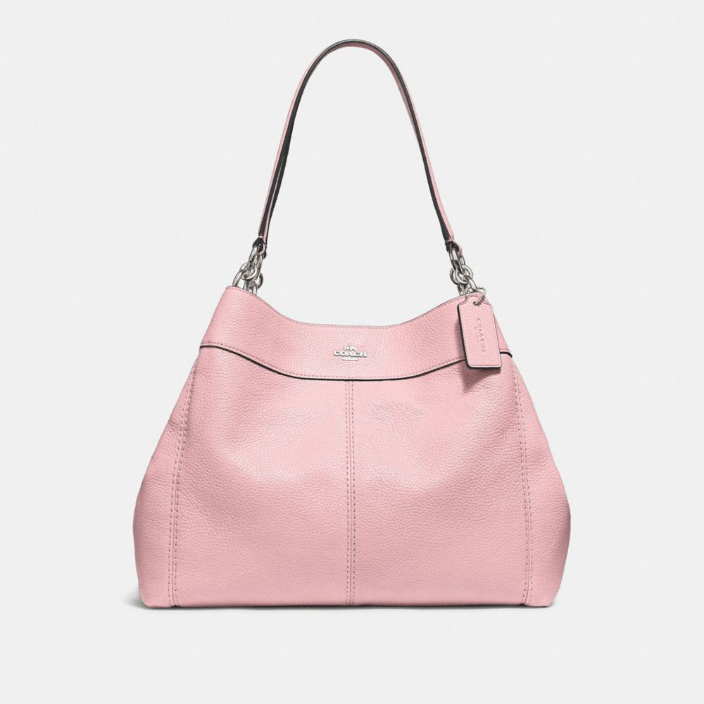 | Refined pebble leather| Inside zip, cell phone and multifunction pockets| Center zip compartment| Snap closure, fabric lining| Handles with 9 1/2" drop| 13" (L) x 10 3/4" (H) x 5" (W)