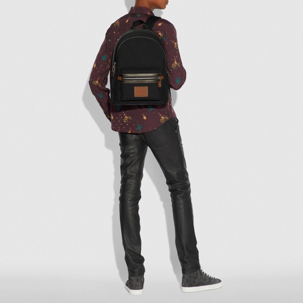 CORDURA® fabric with calf leather details| Inside zip, cell phone and multifunction pockets| Inside tech sleeve with secure tab| Two interior compartments| Zip closure, fabric lining| Outside zip pocket| Adjustable shoulder straps| 11 1/2" (L) x 15 3/4" (H) x 5 3/4" (W)| CORDURA® is a trademark of INVISTA for durable fabric