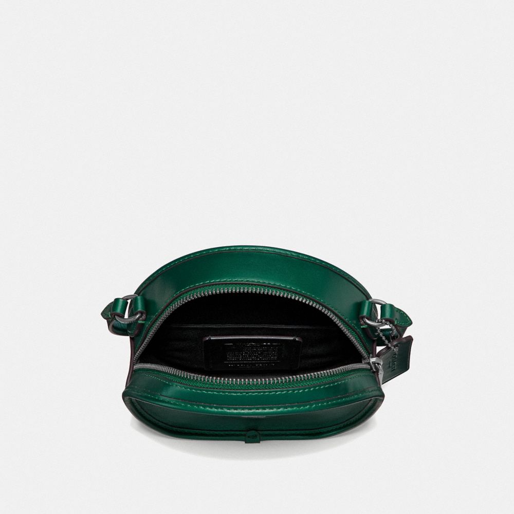 | Metallic refined calf leather| Inside multifunction pocket| Zip closure, fabric lining| Outside slip pocket| Adjustable strap with 23" drop for shoulder or crossbody wear| 7 1/4" (L) x 6" (H) x 2 1/2" (W)