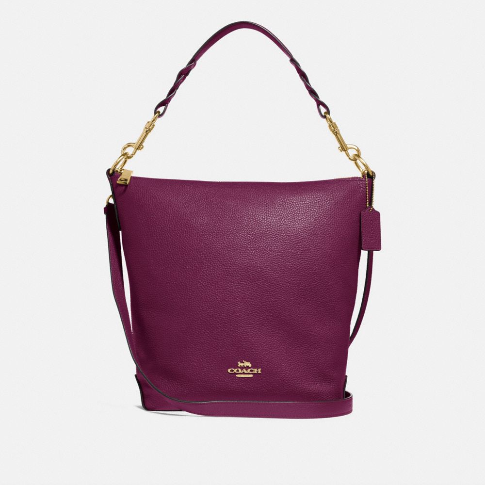 Refined pebble leather| Inside snap pocket| Zip-top closure, fabric lining | Detachable handle with 7 3/4" drop| Outside zip pocket| Detachable strap with 20 1/2" drop for shoulder or crossbody wear| 9 3/4" (L) x 12" (H) x 4" (W)