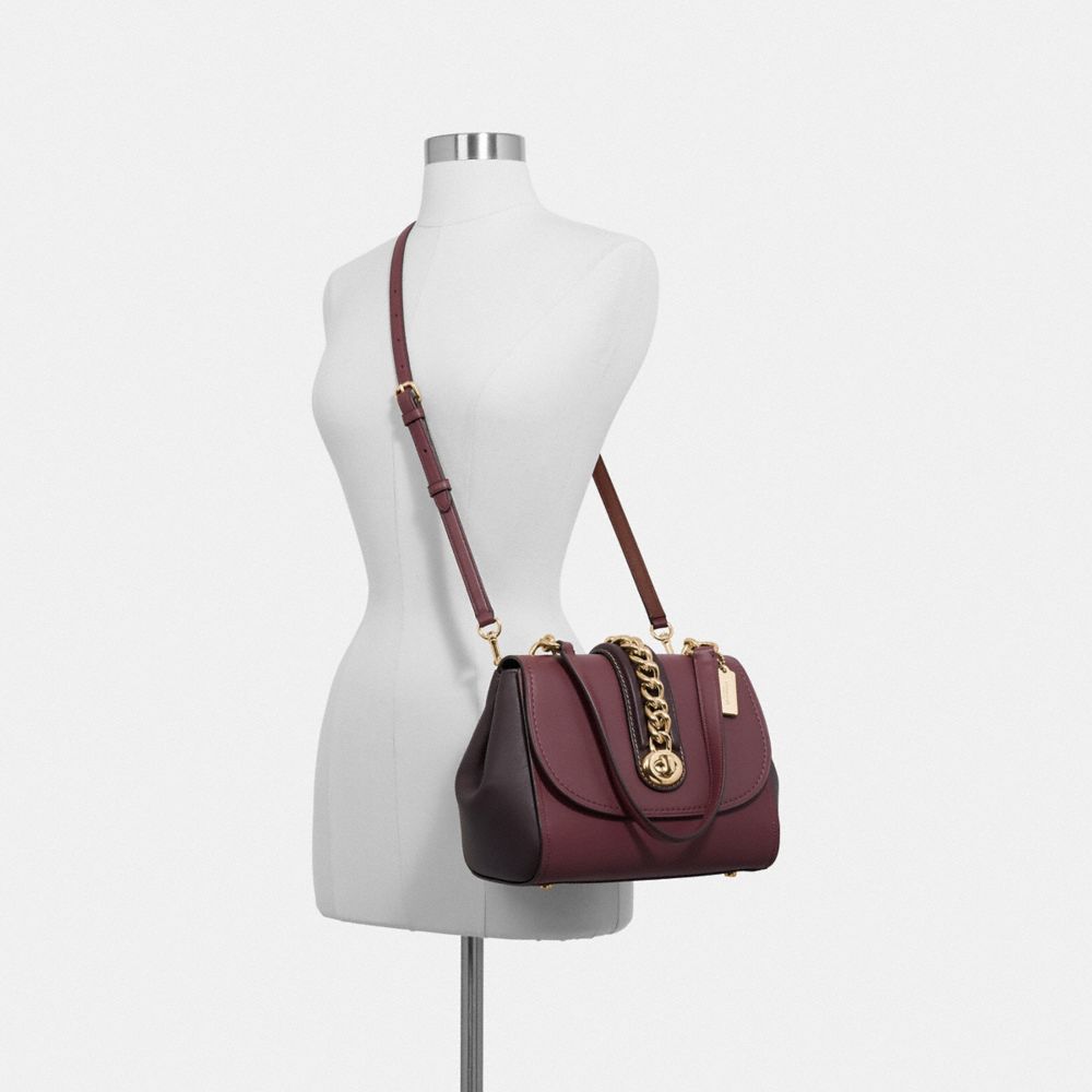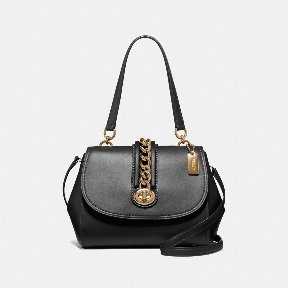 | Smooth leather| Inside zip and multifunction pockets| Turnlock closure, fabric lining| Handle with 8" drop| Outside slip pocket| Detachable strap with 19" drop for shoulder or crossbody wear| 9 1/2" (L) x 7 3/4" (H) x 5 1/2" (W)