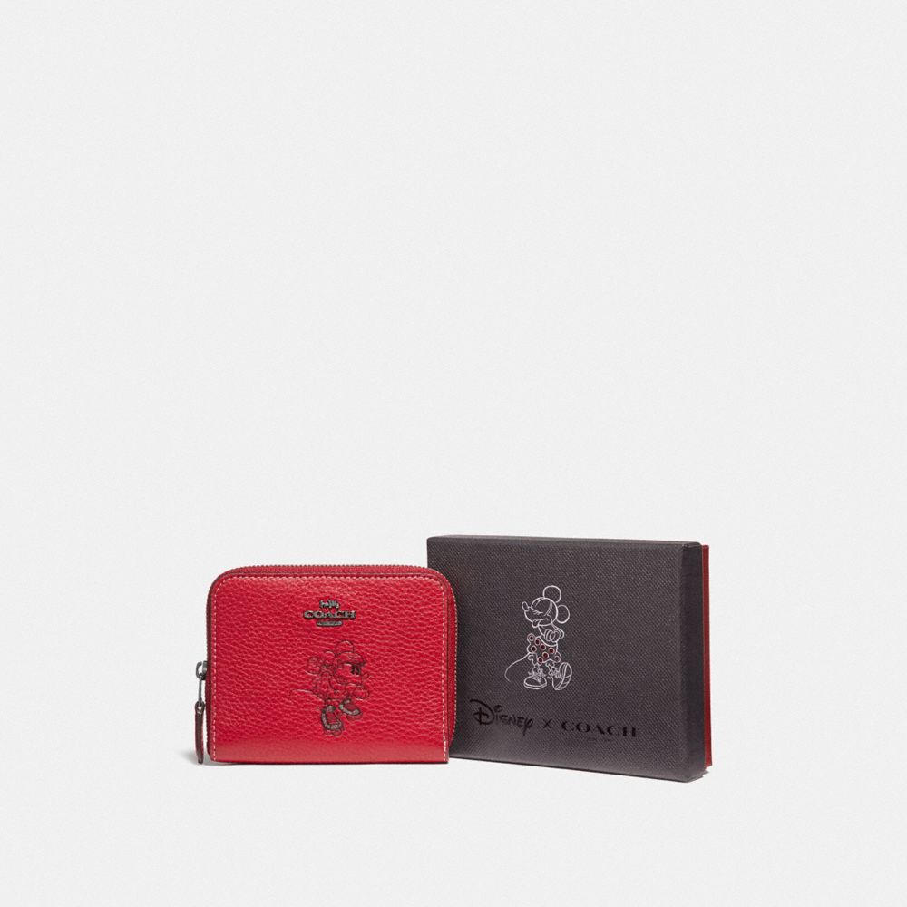 Refined pebble leather| Two credit card slots| Bill compartment| Inside zip coin pocket| Zip-around closure| 4 1/2" (L) x 3 3/4" (H) x 3/4" (W)| Packaged in a Coach gift box| Disney x Coach| ©Disney