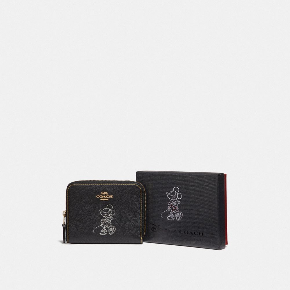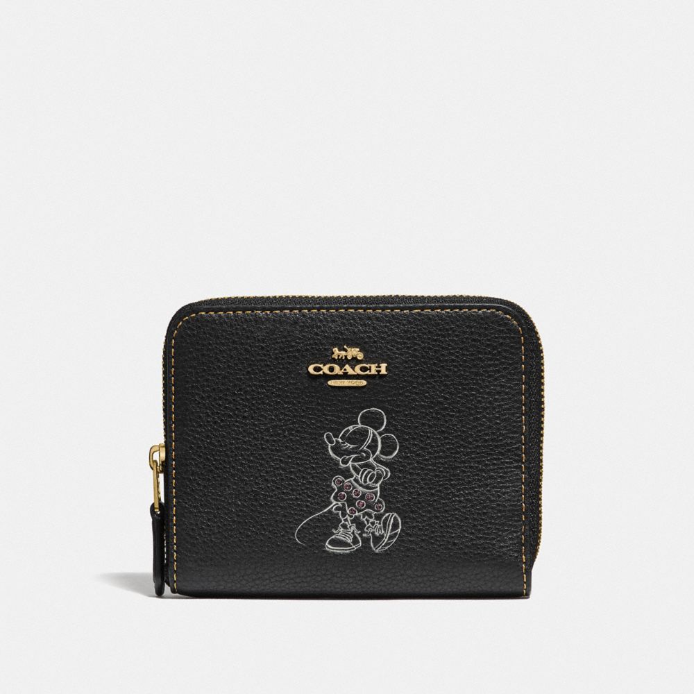 Refined pebble leather| Two credit card slots| Bill compartment| Inside zip coin pocket| Zip-around closure| 4 1/2" (L) x 3 3/4" (H) x 3/4" (W)| Packaged in a Coach gift box| Disney x Coach| ©Disney
