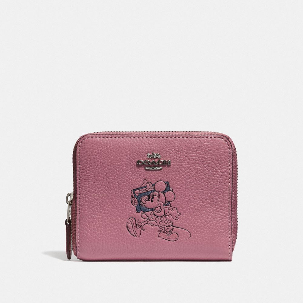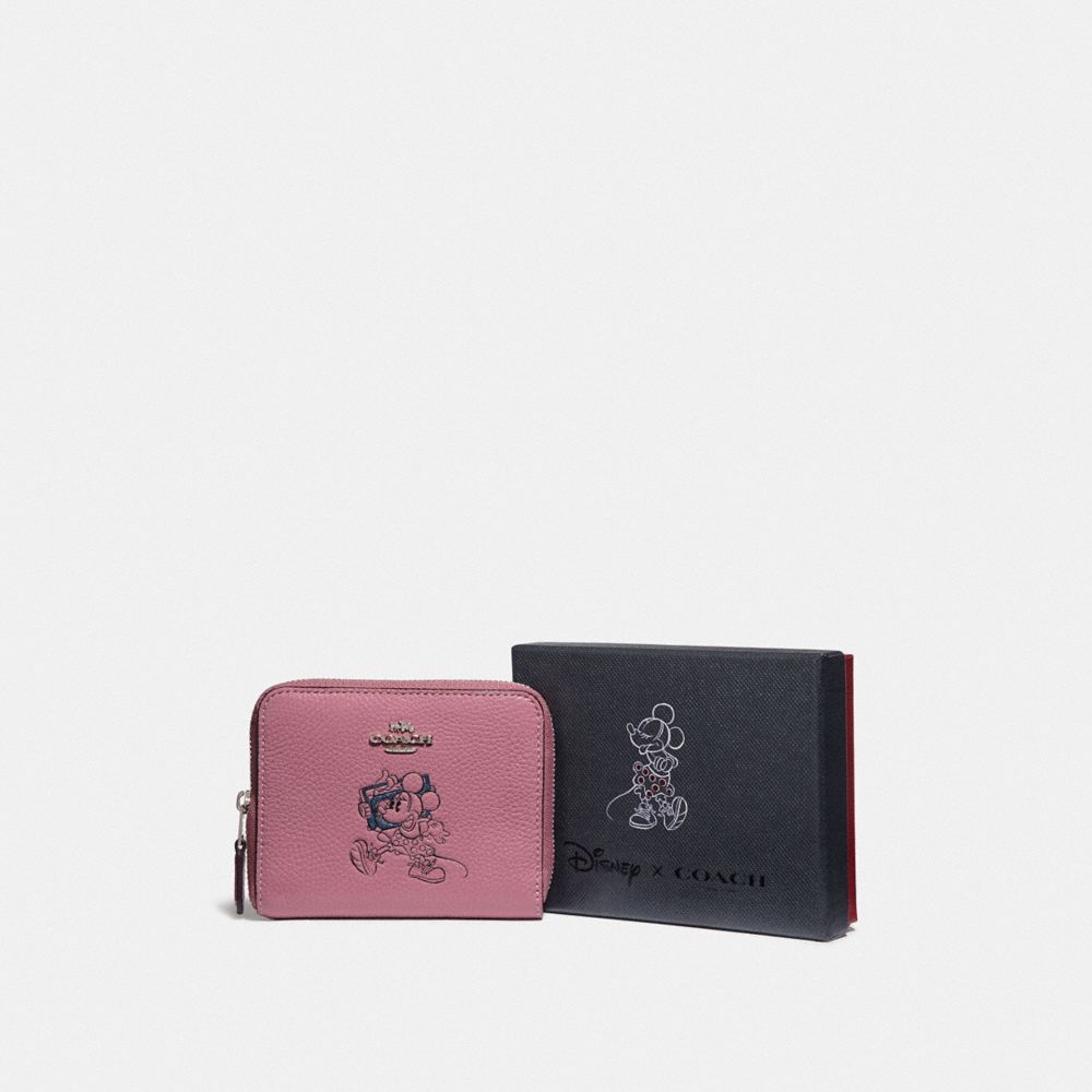 Refined pebble leather| Two credit card slots| Bill compartment| Inside zip coin pocket| Zip-around closure| 4 1/2" (L) x 3 3/4" (H) x 3/4" (W)| Packaged in a Coach gift box| Disney x Coach| ©Disney