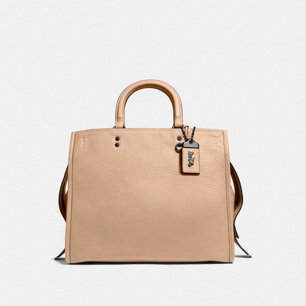 Glovetanned pebble leather| Inside zip and French purse pockets| Zip closure, fabric and suede lining| Two open compartments| Handles with 3 1/2" drop| Detachable straps with 10" drop for shoulder wear| Shoulder straps can be linked together for crossbody wear| 12 1/4" (L) x 9 3/4" (H) x 5 1/2" (W)