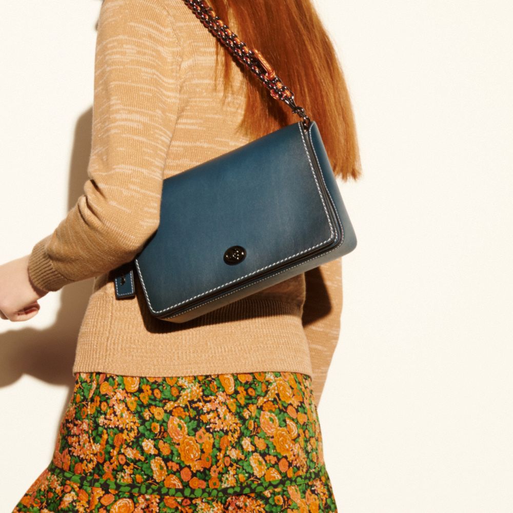 Burnished glovetanned leather| Inside open and coin purse pockets| Turnlock closure, leather lining| Outside slip pocket| Detachable strap with 22" drop doubles up for three ways to wear: short or long on the shoulder or crossbody style| 9 1/2" (L) x 6 3/4" (H) x 2 3/4" (W)