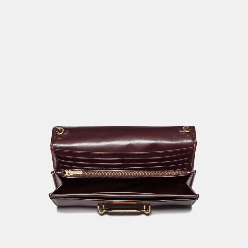 | Flocked fabric and refined calf leather| Ten credit card slots| Full-length bill compartment| Inside zip compartment| Snap closure, fabric lining| Detachable wrist strap| Outside slip pocket| Detachable long strap with 22" drop for shoulder or crossbody wear| 8" (L) x 5" (H) x 3/4" (W)