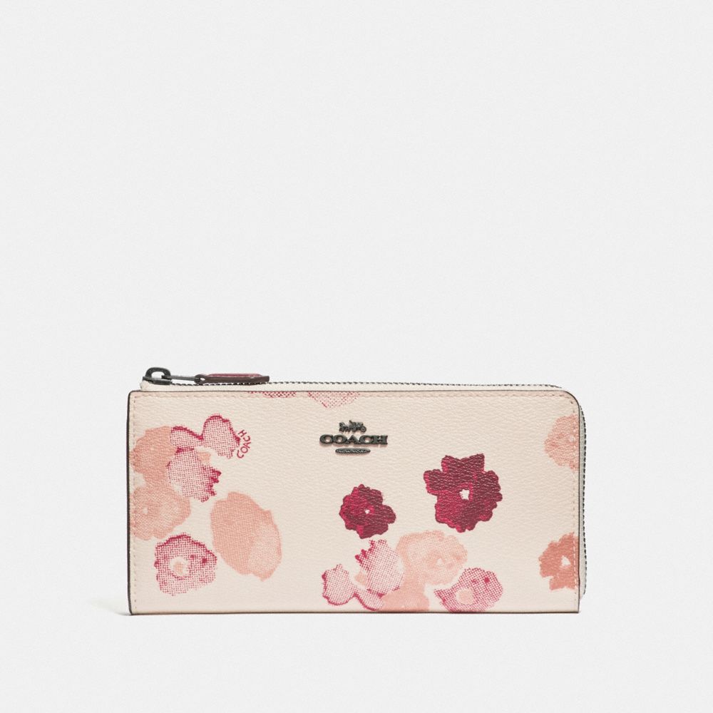 L-ZIP WALLET WITH HALFTONE FLORAL PRINT