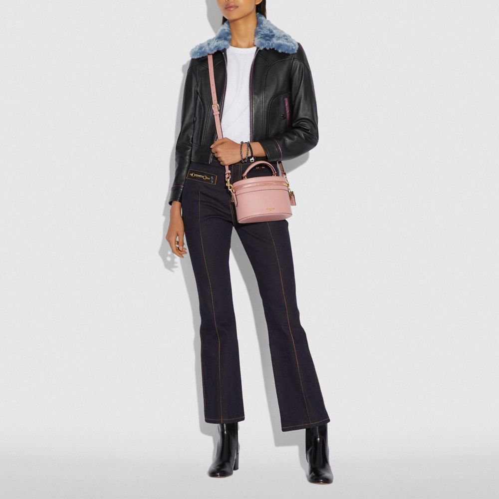 Refined calf leather| Inside multifunction pocket| Zip closure, fabric lining| Top handle with 2 1/2" drop| Outside slip pocket| Detachable strap with 22" drop for shoulder or crossbody wear| 7 3/4" (L) x 5 1/4" (H) x 4 1/2" (W)| Coach x Selena Gomez collection