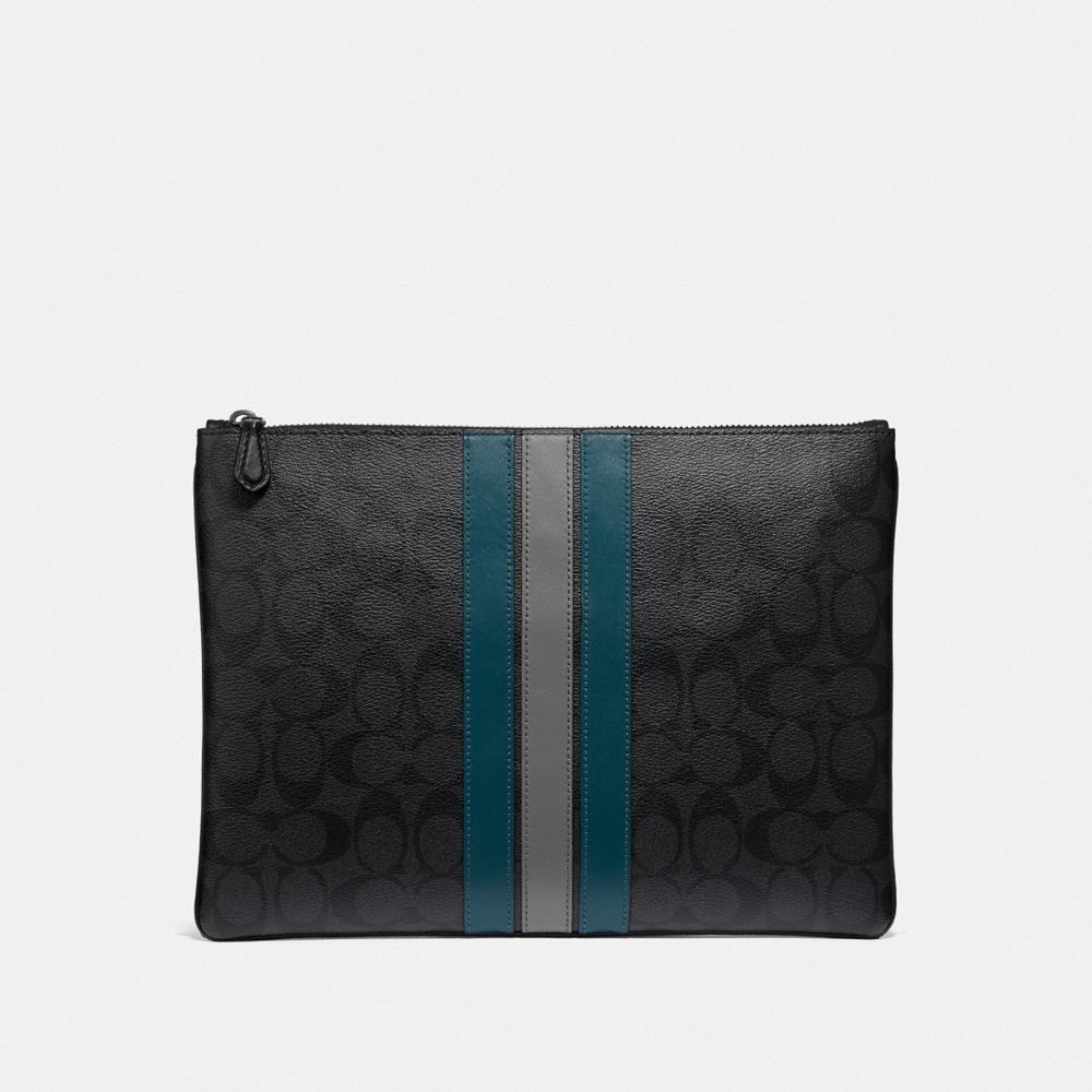 LARGE POUCH IN SIGNATURE CANVAS WITH VARSITY STRIPE