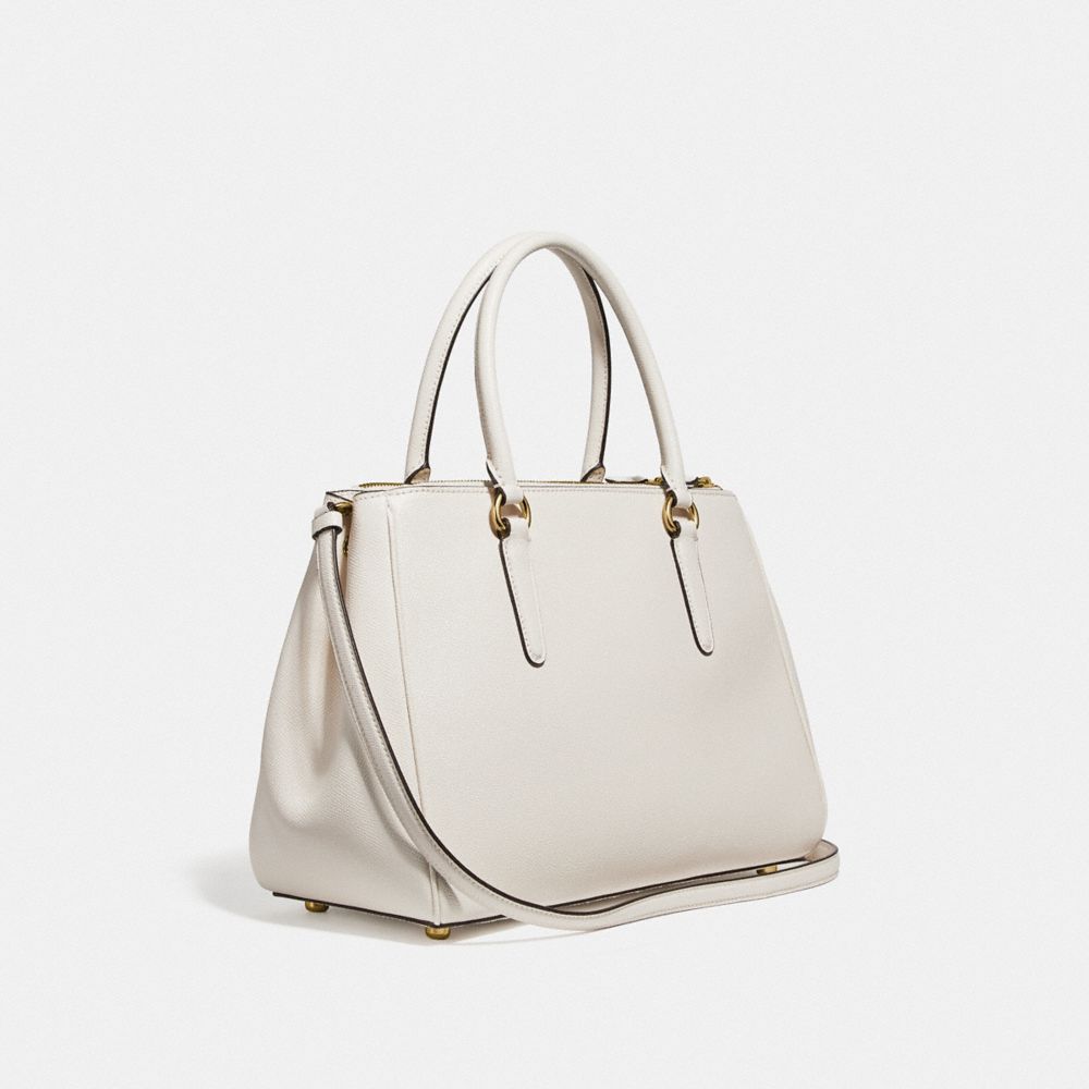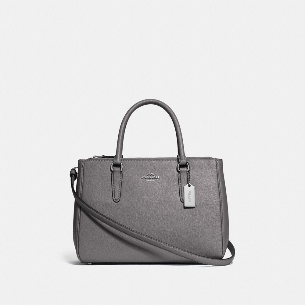 Crossgrain leather| Inside cell phone and multifunction pockets| Snap closure, fabric lining| Side zip compartments| Handles with 4 1/4" drop| Detachable strap with 20 1/2" drop for shoulder or crossbody wear| 11 1/4" (L) x 8" (H) x 5" (W)