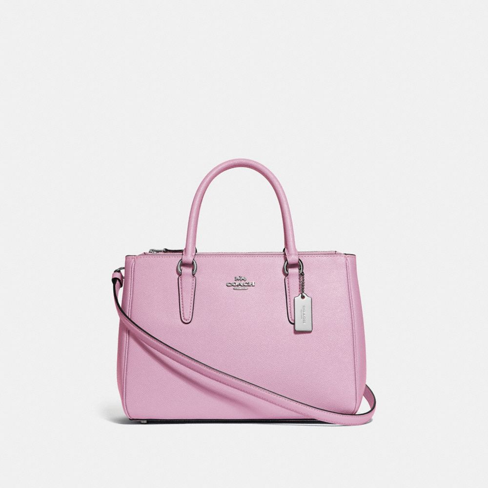 Crossgrain leather| Inside cell phone and multifunction pockets| Snap closure, fabric lining| Side zip compartments| Handles with 4 1/4" drop| Detachable strap with 20 1/2" drop for shoulder or crossbody wear| 11 1/4" (L) x 8" (H) x 5" (W)