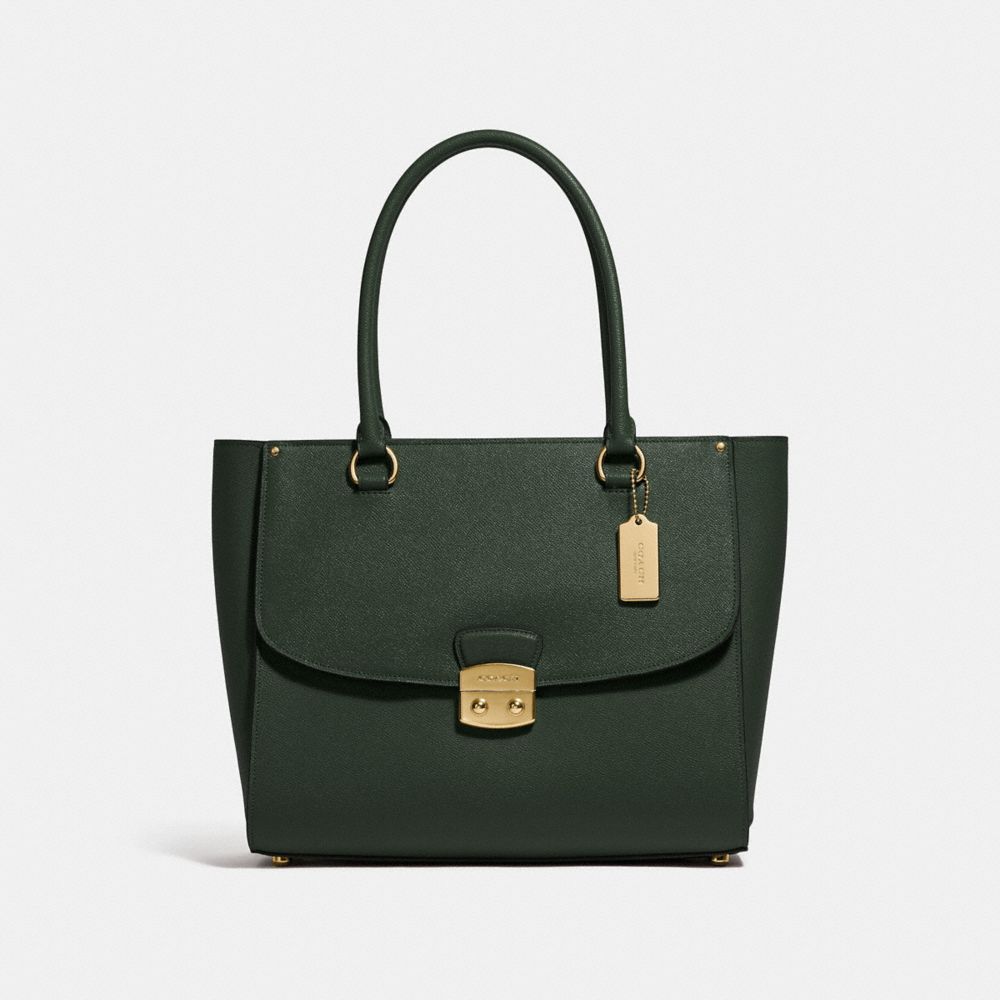 | Crossgrain leather| Inside cell phone and multifunction pockets| Zip-top closure, fabric lining| Handles with 7 3/4" drop| Outside flap pocket| 12 1/2" (L) x 10 3/4" (H) x 5 3/4" (W)