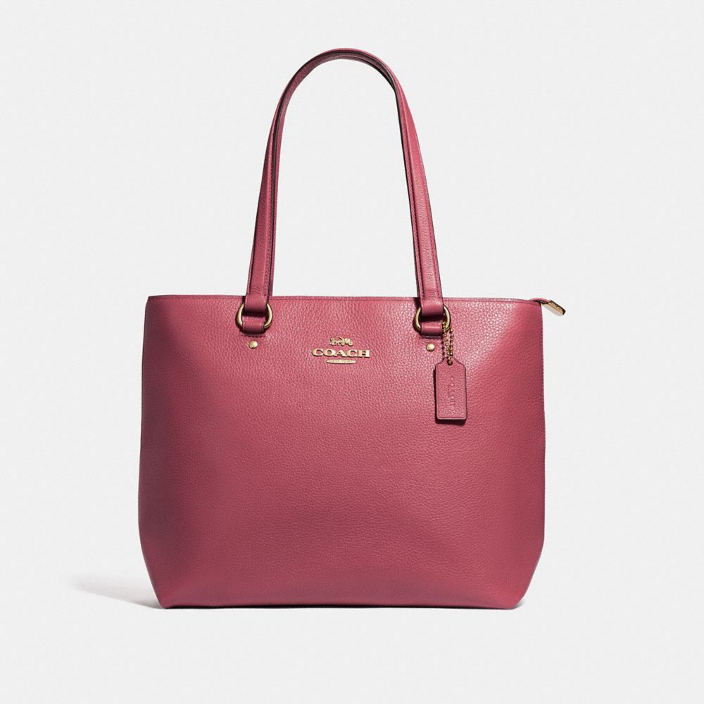 Refined pebble leather| Inside cell phone and multifunction pockets| Zip-top closure, fabric lining| Handles with 9 1/4" drop| Outside zip pocket| 12 1/2" (L) x 11" (H) x 5 1/4" (W)