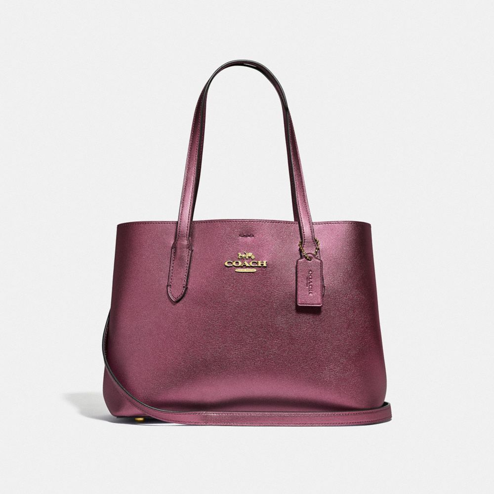 Metallic double face leather| Center zip compartment| Snap closure, fabric lining| Handles with 8 1/2" drop| Detachable strap with 19 1/2" drop for shoulder or crossbody wear| 13" (L) x 9 3/4" (H) x 5 1/2" (W)
