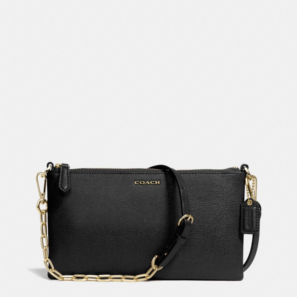 Details| | | Saffiano leather| Two credit card pockets and open multifunction pocket| Zip-top closure, fabric lining| Adjustable strap with 23" drop for shoulder or crossbody wear| 8 1/2" (L) x 4 3/4" (H) x 3/4" (W)