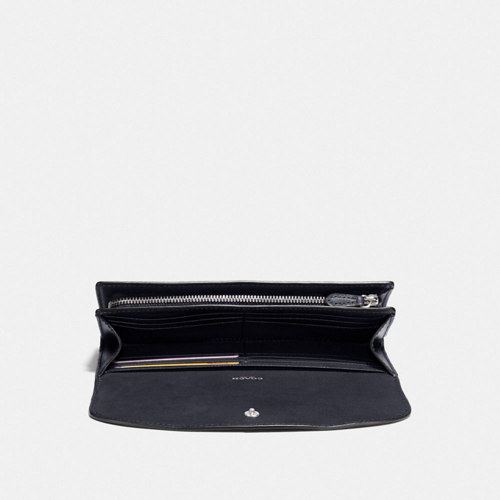 Signature coated canvas with crossgrain leather details| 12 credit card slots| Full-length bill compartment| Zip coin pocket| Snap closure | Outside open pocket| 7 3/4" (L) x 4" (H) x 3/4" (W)