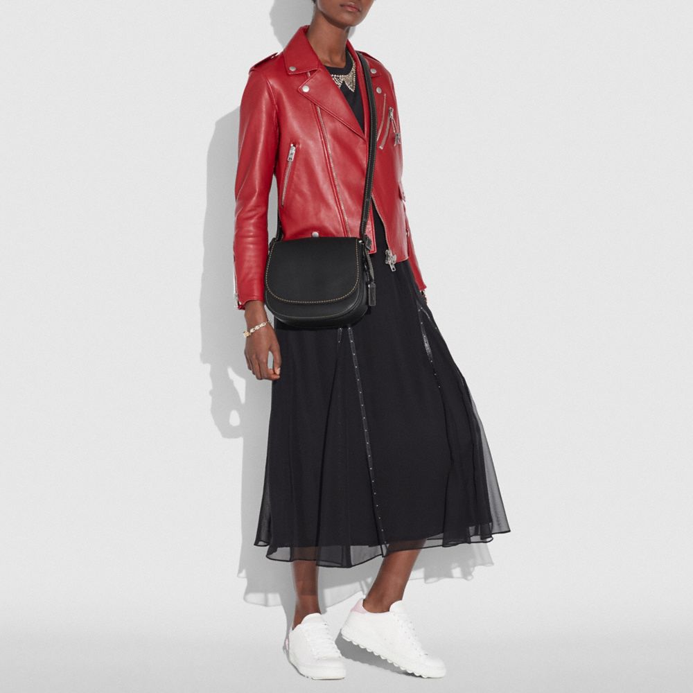 Glovetanned leather| Inside zip and open pockets| Flap closure, leather lining| Four-hole adjustable strap doubles up for three ways to wear: short or long on the shoulder or crossbody style| 9" (L) x 7 3/4" (H) x 3" (W)