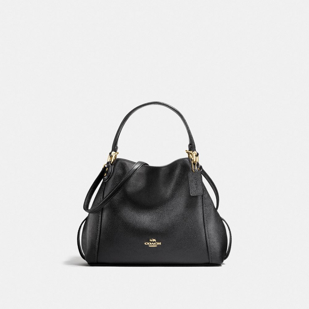 Polished pebble leather| Inside zip and multifunction pockets| Dogleash clip and snap closure, fabric lining| Handles with 6 1/4" drop| Detachable strap with 22" drop for shoulder or crossbody wear| 11 1/2" (L) x 9" (H) x 4 3/4" (W)
