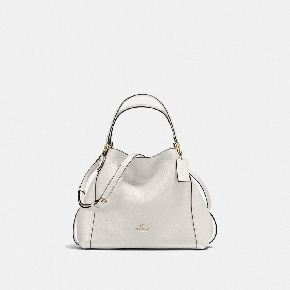 Polished pebble leather| Inside zip and multifunction pockets| Dogleash clip and snap closure, fabric lining| Handles with 6 1/4" drop| Detachable strap with 22" drop for shoulder or crossbody wear| 11 1/2" (L) x 9" (H) x 4 3/4" (W)