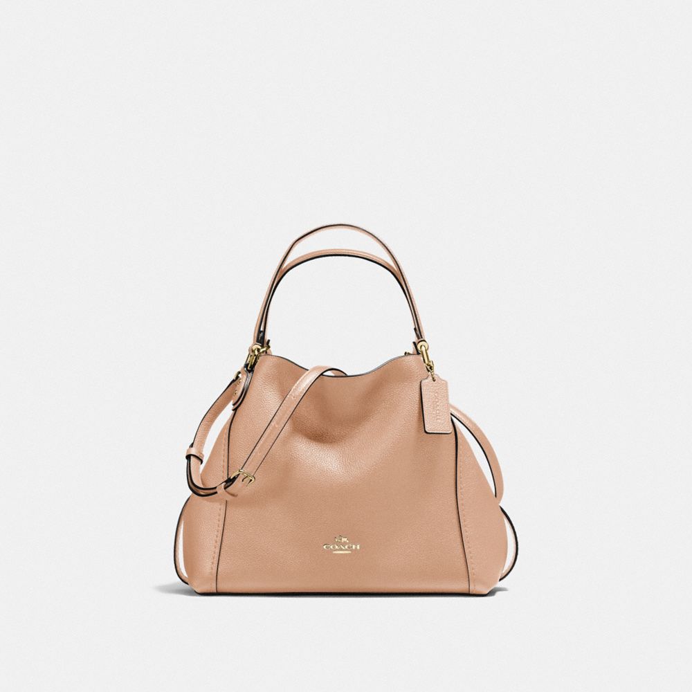 Polished pebble leather| Inside zip and multifunction pockets| Dogleash clip and snap closure, fabric lining| Handles with 6 1/4" drop| Detachable strap with 22" drop for shoulder or crossbody wear| 11 1/2" (L) x 9" (H) x 4 3/4" (W)