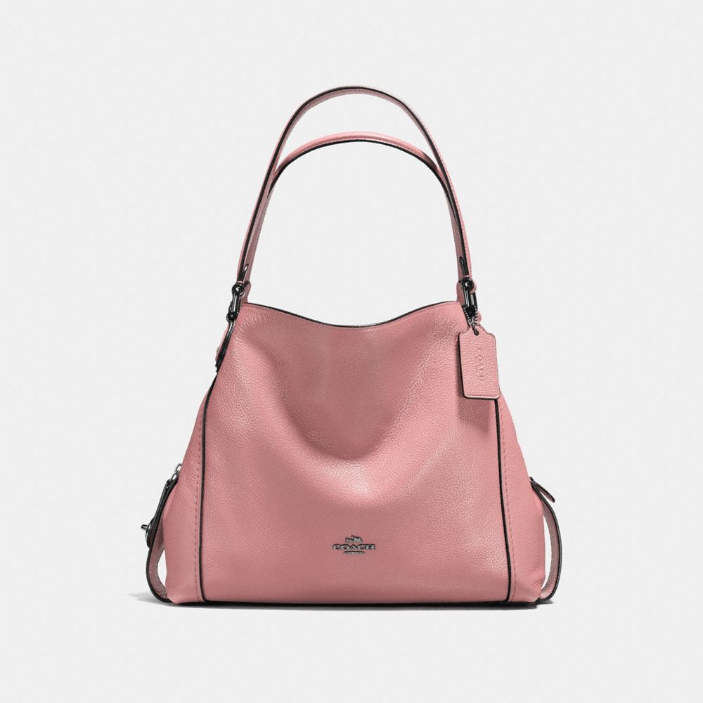 Polished pebble leather| Inside zip and multifunction pockets| Center zip compartment| Snap closure, fabric lining| Handles with 7" drop | 12 1/2" (L) x 10 1/4" (H) x 4 1/4" (W)