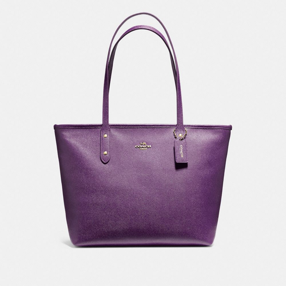Crossgrain leather and coated canvas| Inside zip, cell phone and multifunction pockets| Zip-top closure, fabric lining| Handles with 10" drop| 11 3/4" (L) x 10 1/2" (H) x 5 1/2" (W)