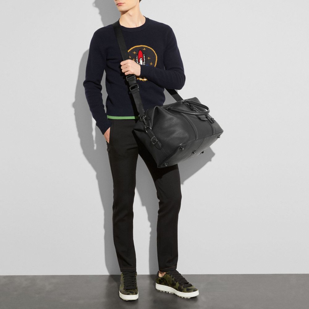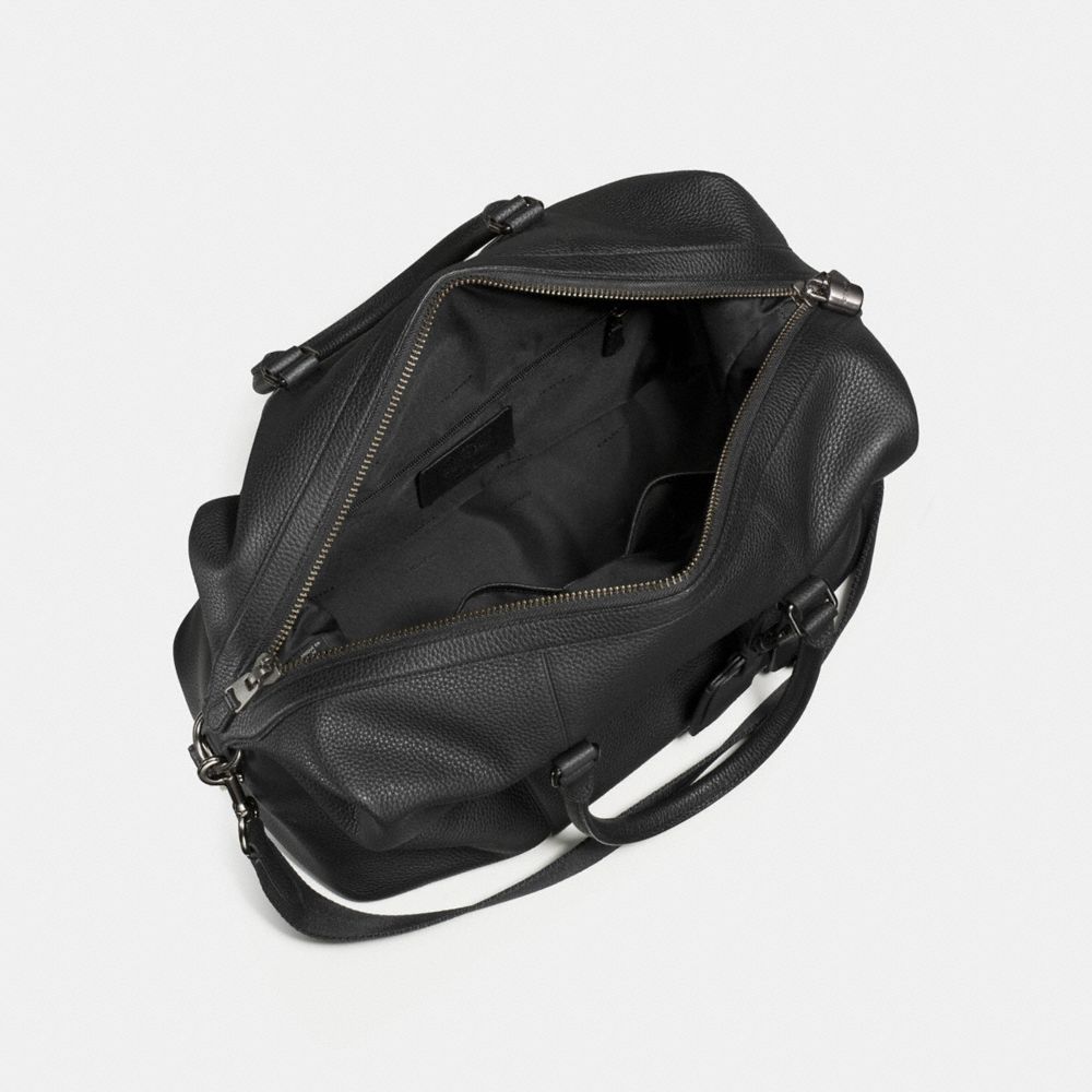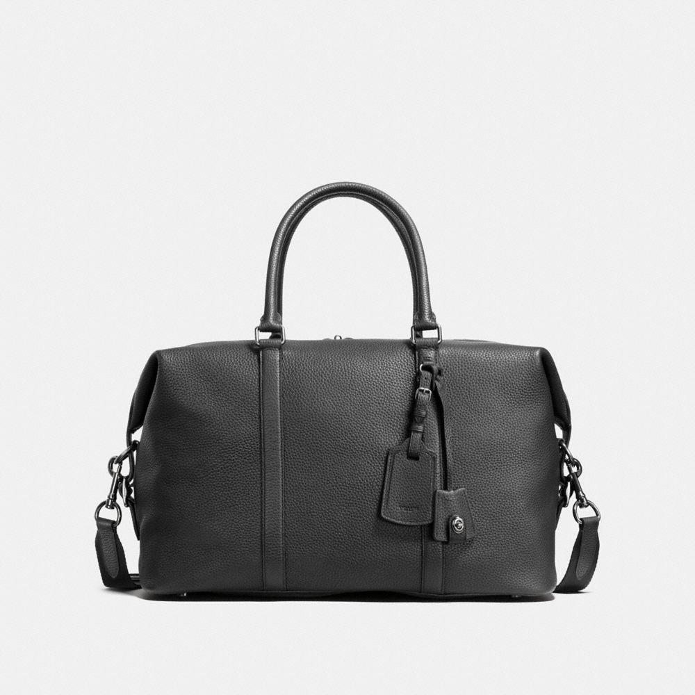 Pebble leather| Inside zip and multifunction pockets| Full-length zip closure, fabric lining| Leather handles with 7 1/2" drop| Detachable nylon strap with 53 1/4" drop for shoulder or crossbody wear| Padlock and luggage tag included| 17 1/4" (L) x 11" (H) x 9" (W)| Complies with TSA size regulations for carry-on luggage