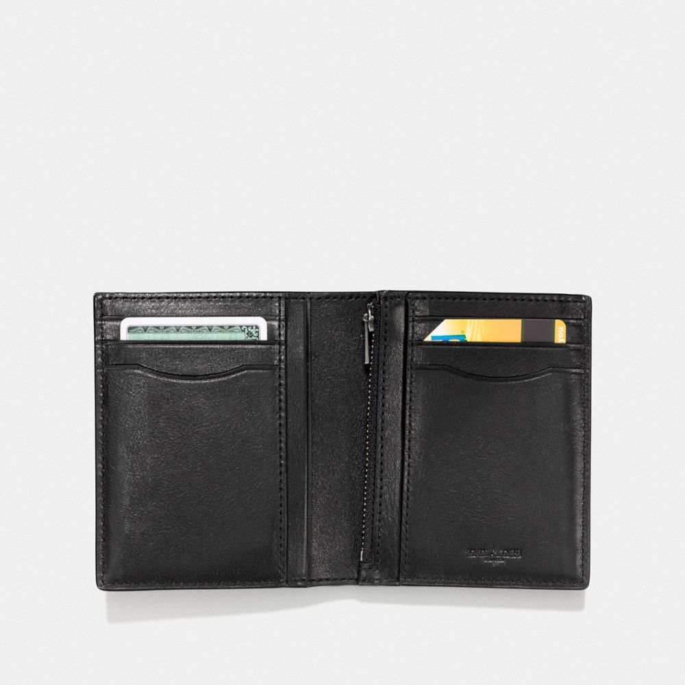 Sport calf leather| Six credit card slots| Full-length bill compartment| Zip coin pocket| 3 1/2" (L) x 4 1/4" (H) x 1" (W)