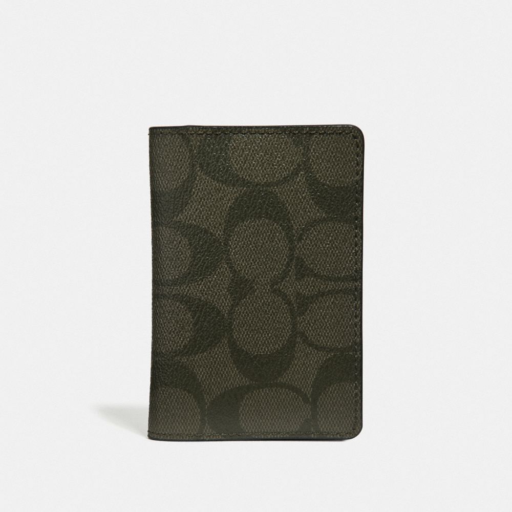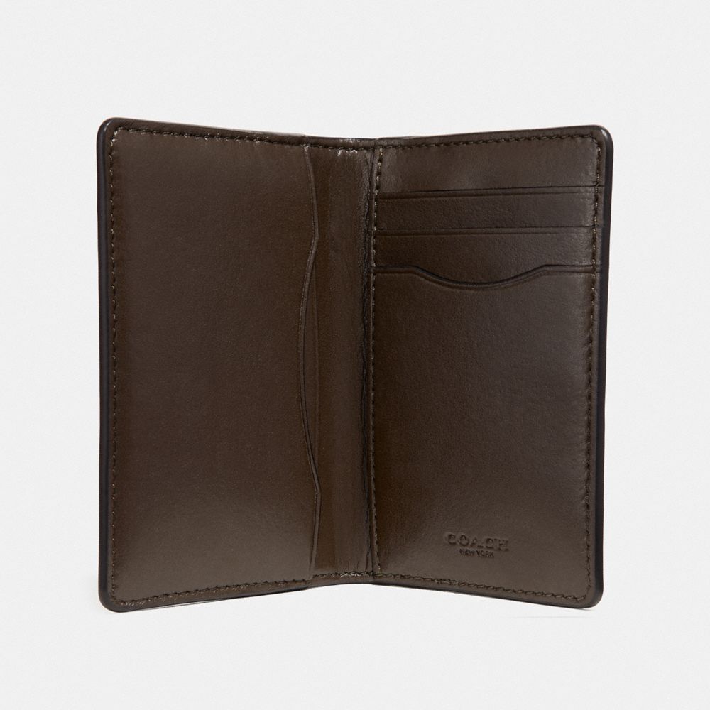 | Signature coated canvas| Three credit card slots| Inside open pockets| Outside open pocket| 3" (L) x 4 1/2" (H) x 3/4" (W)