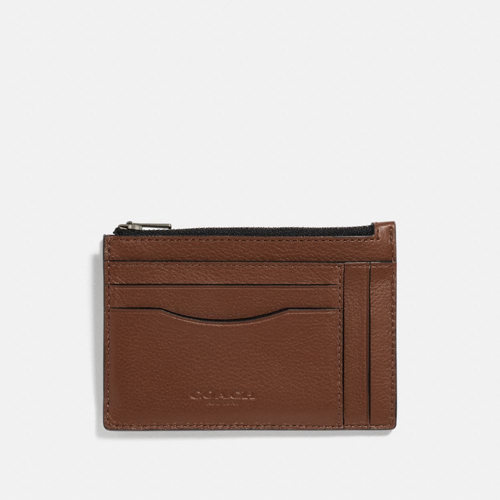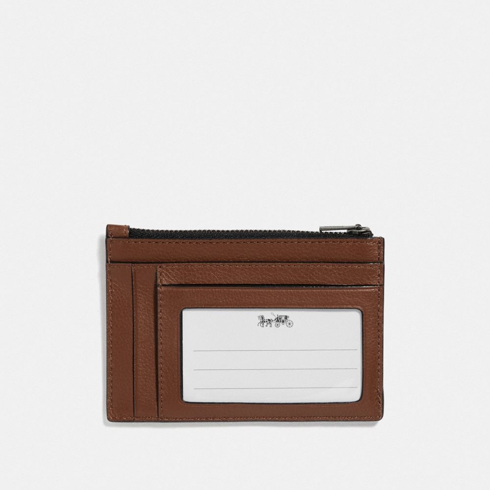 | Smooth calf leather| Six credit card slots| Open pockets| ID window| Zip coin pocket| 5" (L) x 3 1/4" (H)