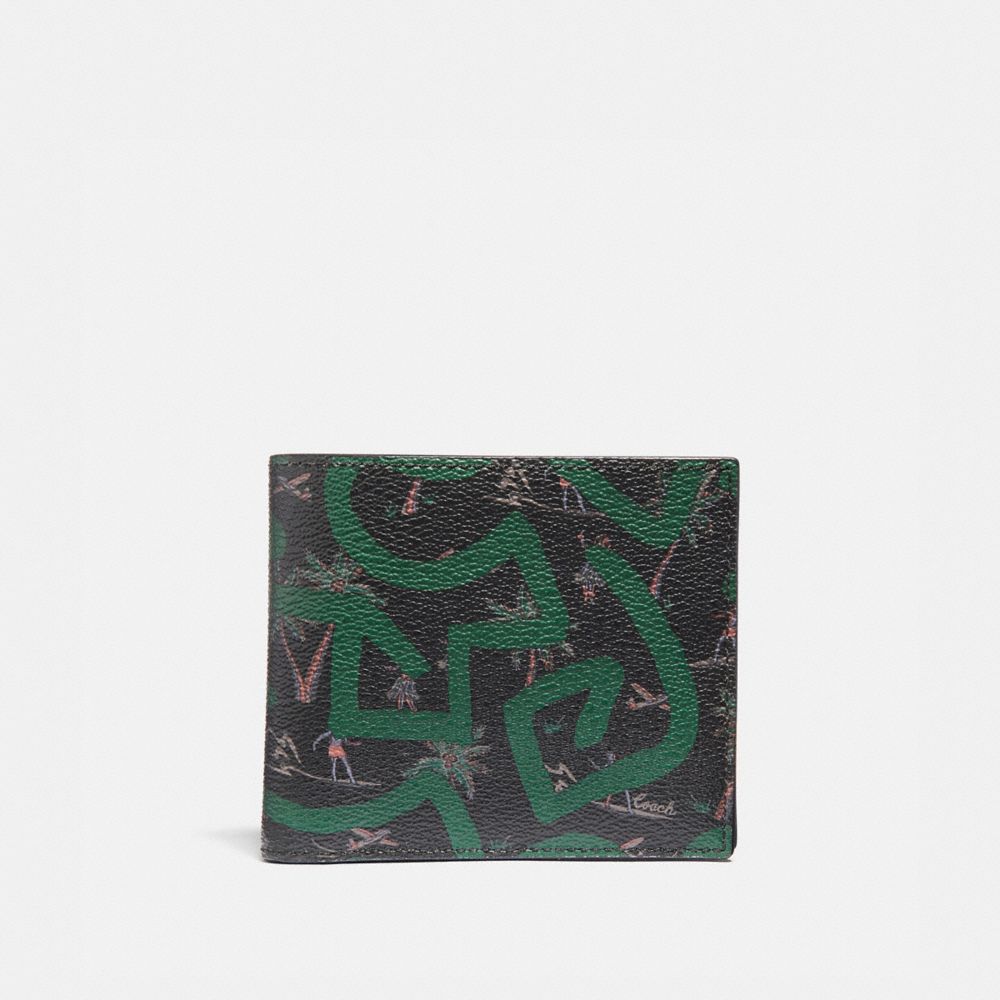 | Printed coated canvas| Five credit card slots| Full-length bill compartment| ID window| 4" (L) x 3 1/2" (H)| Coach x Keith Haring collection| © Keith Haring Foundation. Licensed by Artestar, New York.
