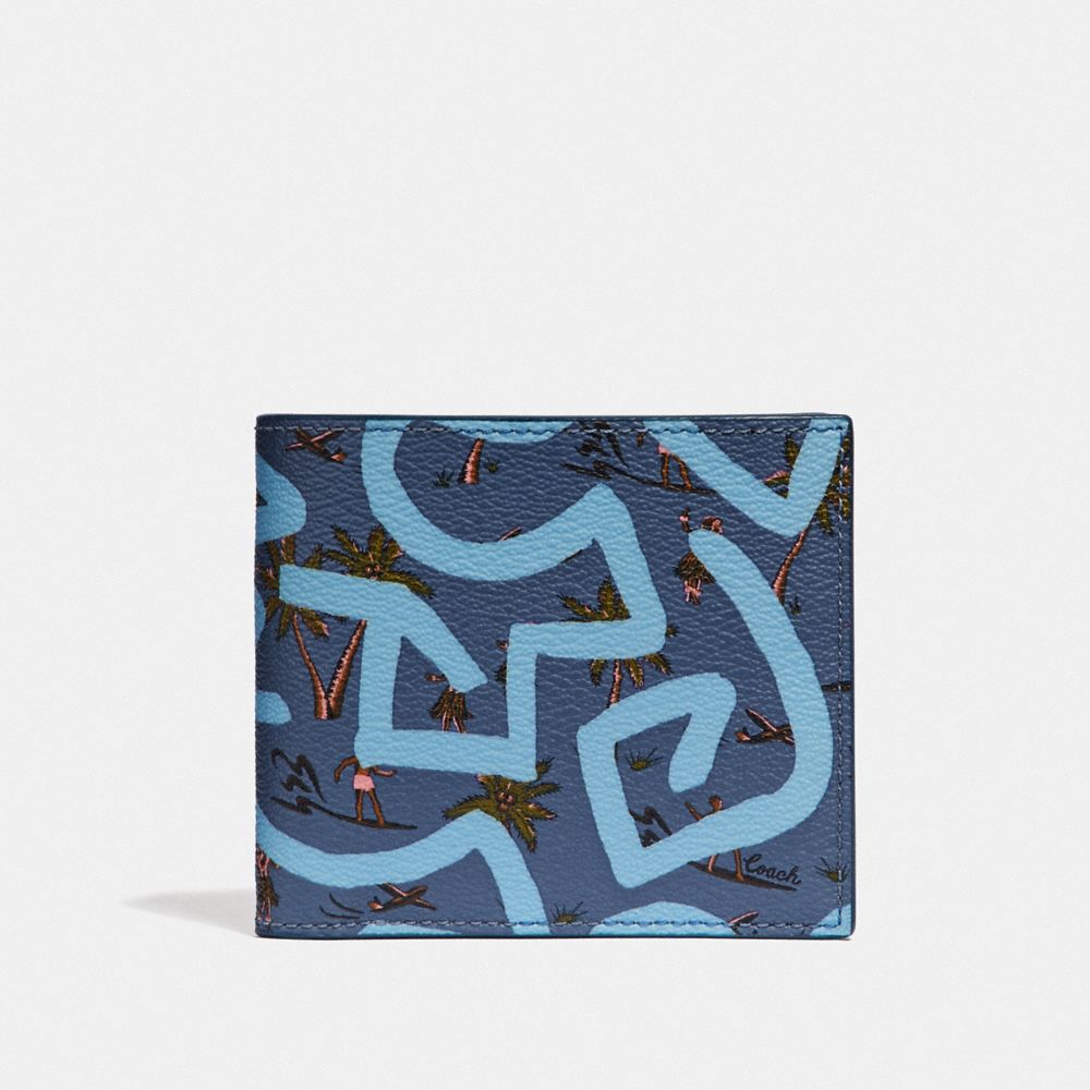 | Printed coated canvas| Five credit card slots| Full-length bill compartment| ID window| 4" (L) x 3 1/2" (H)| Coach x Keith Haring collection| © Keith Haring Foundation. Licensed by Artestar, New York.