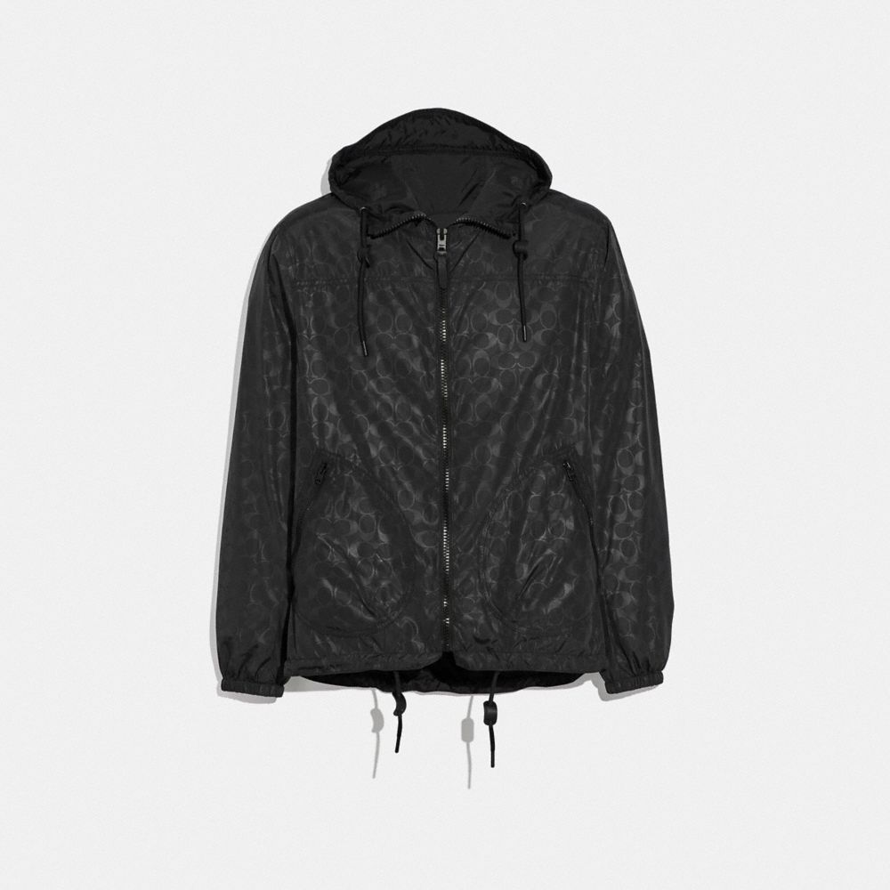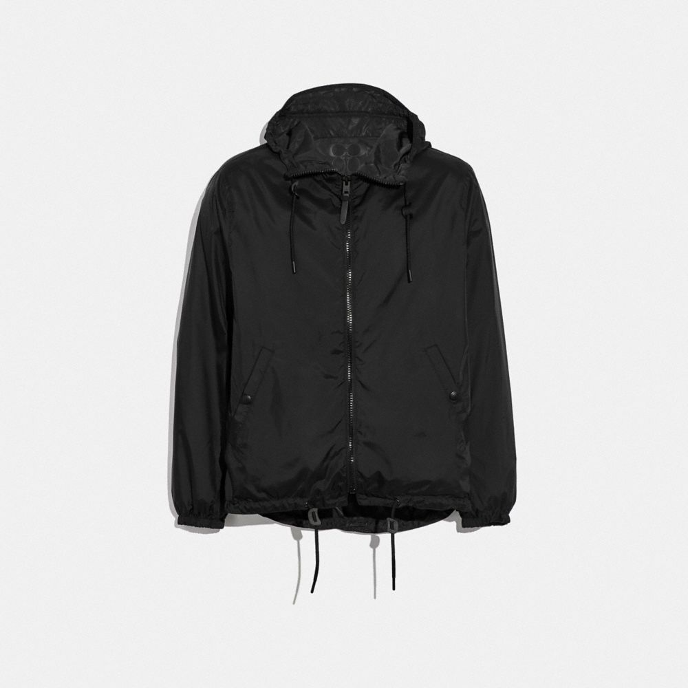 | 100% polyester| Lining: 100% polyester| Leather details| Zip closure| Zip and snap pockets| Reversible| Length: 30 3/4"