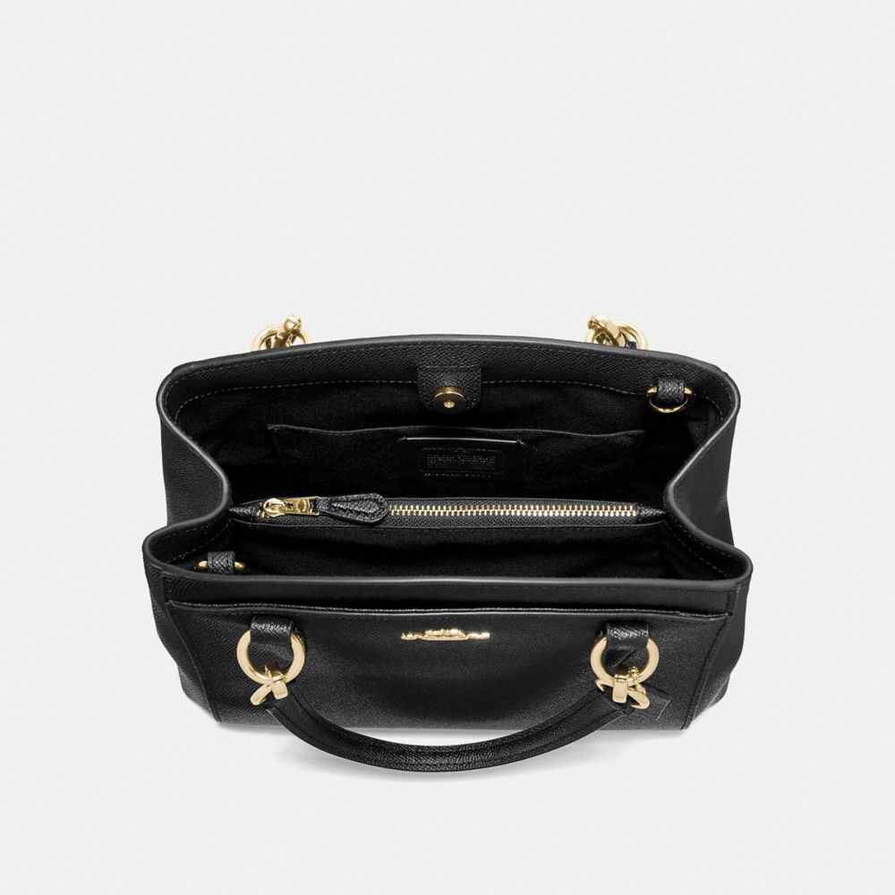 | Crossgrain leather| Inside multifunction pocket| Center zip compartment| Snap closure, fabric lining| Handles with 5 1/2" drop| Outside slip pocket| Detachable strap with 22" drop for shoulder or crossbody wear| 11 1/2" (L) x 9 1/2" (H) x 4 1/4" (W)