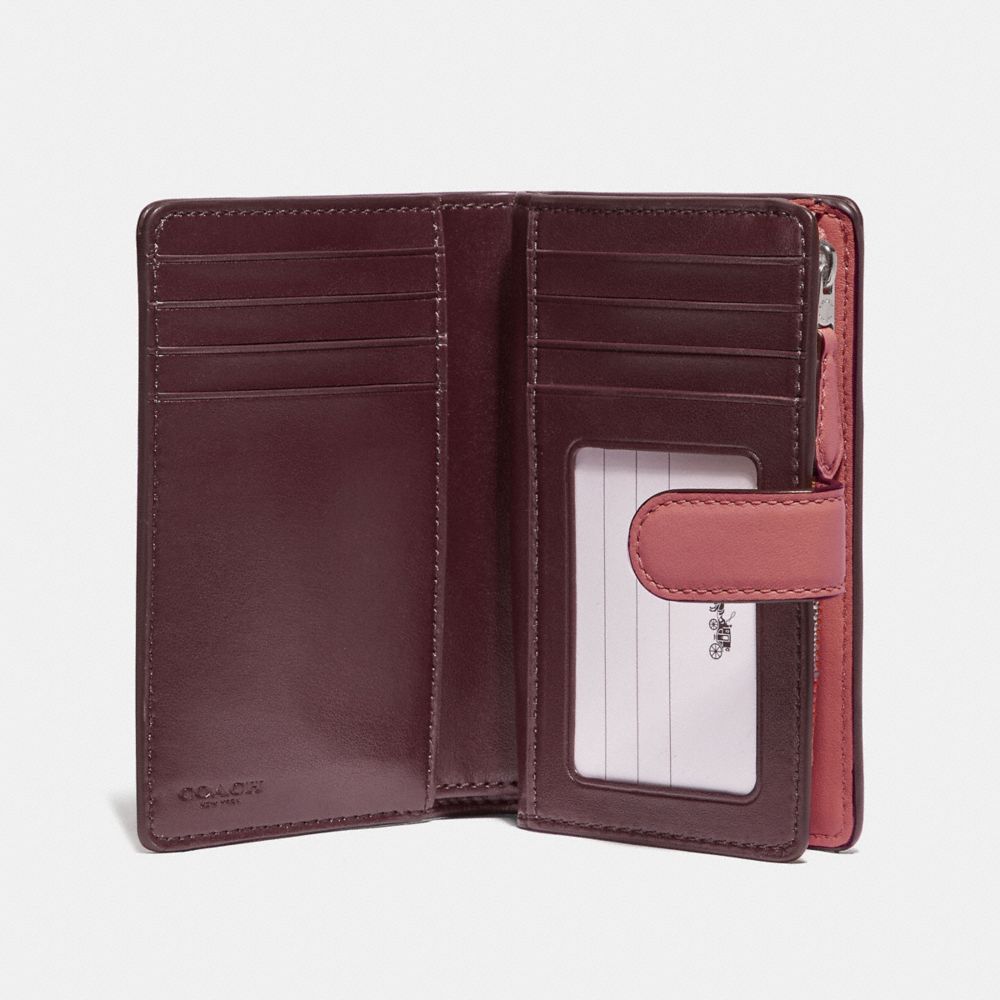 | Signature smooth calf leather| Seven credit card slots| Bill compartment| ID window| Zip pocket| Snap closure| 5" (L) x 3 1/2" (H) x 1/2" (W)