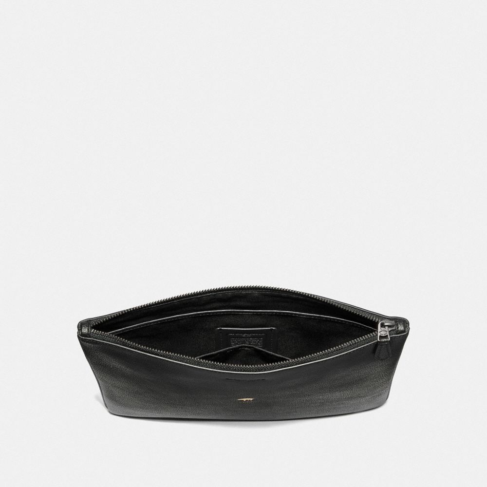 Polished pebble leather| Two credit card slots| Inside snap pocket| Zip-top closure, fabric lining| 11 3/4" (L) x 8 1/2" (H)