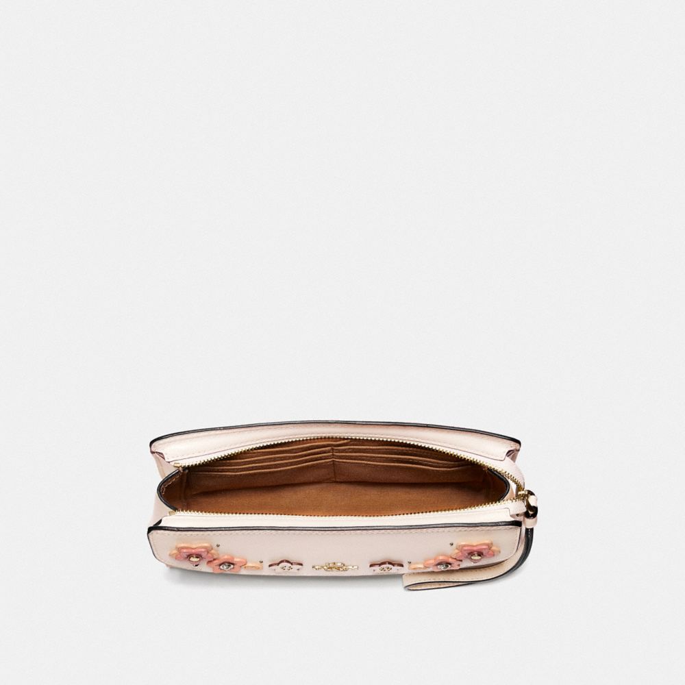 FLAP CLUTCH IN SIGNATURE CANVAS WITH FLORAL APPLIQUE