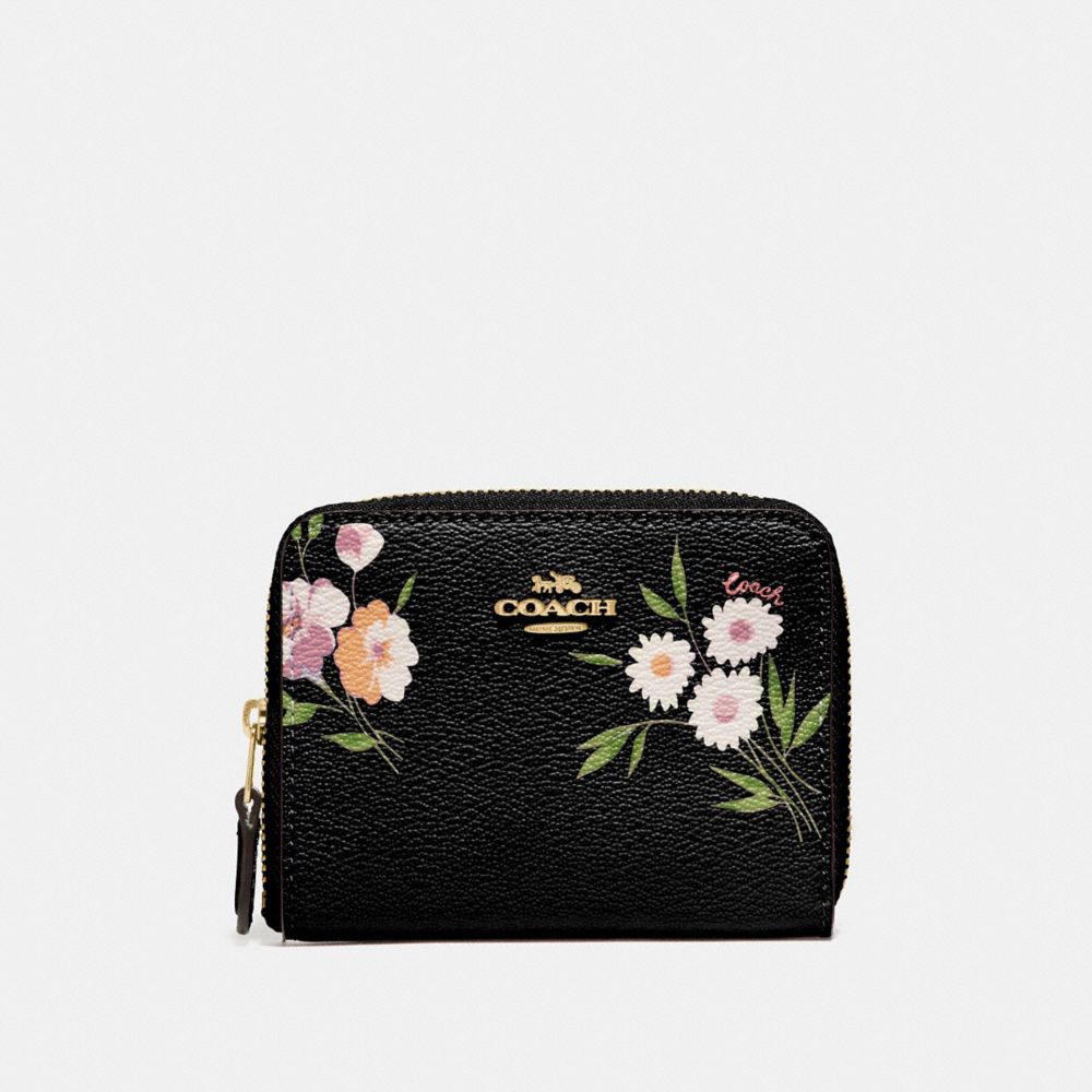 SMALL ZIP AROUND WALLET WITH TOSSED DAISY PRINT