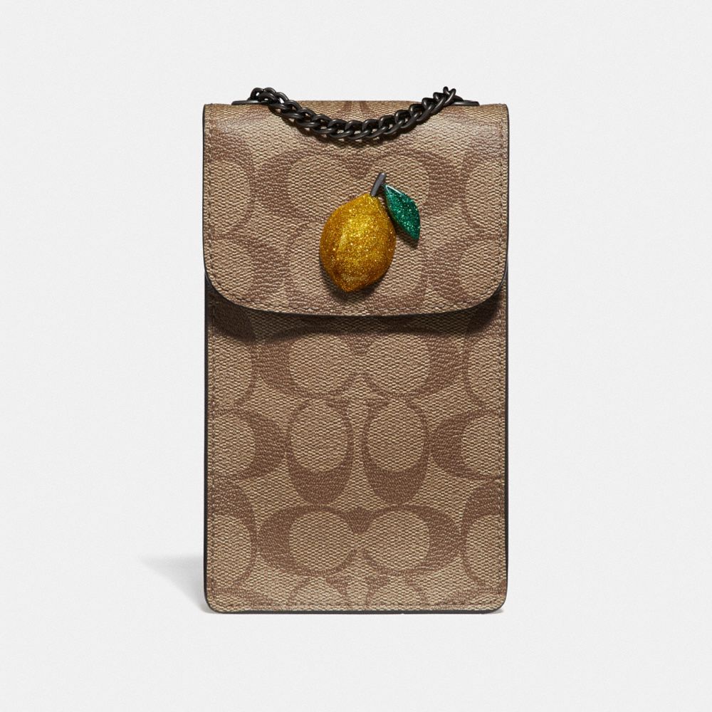 NORTH/SOUTH CROSSBODY IN SIGNATURE CANVAS WITH FRUIT