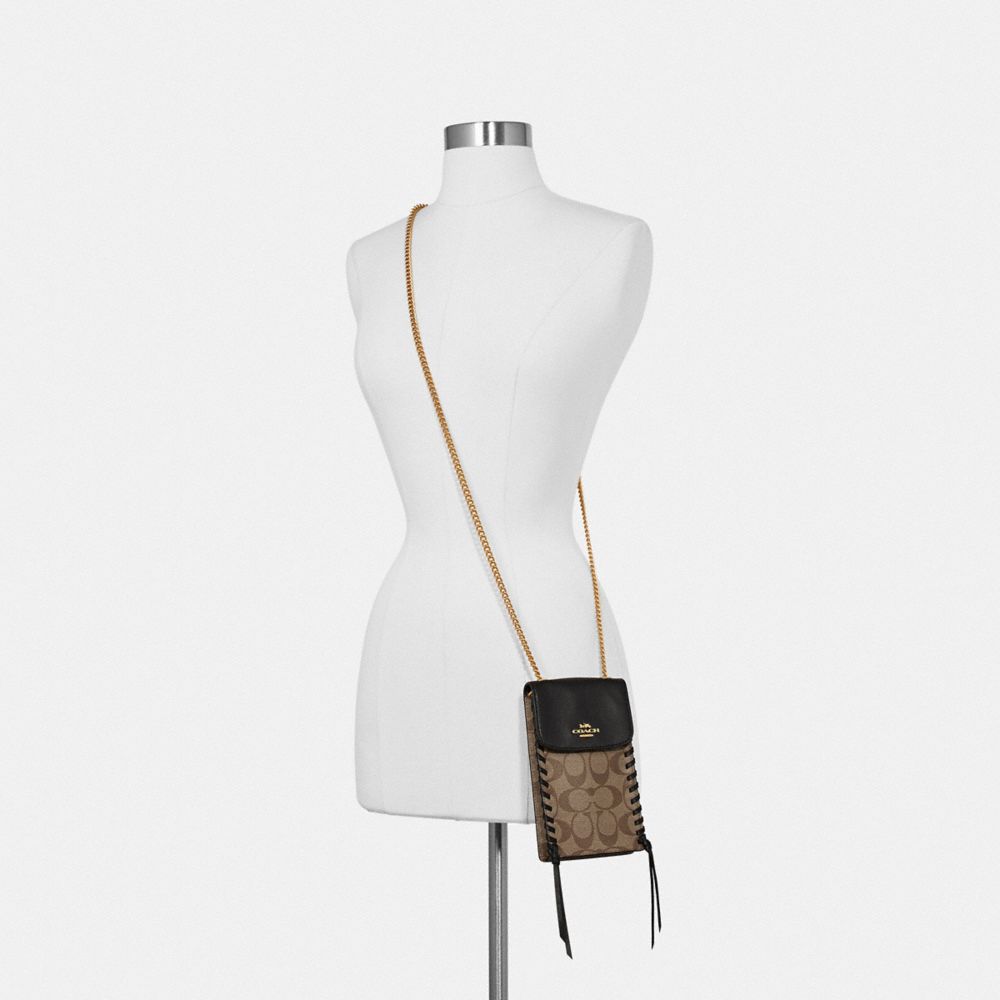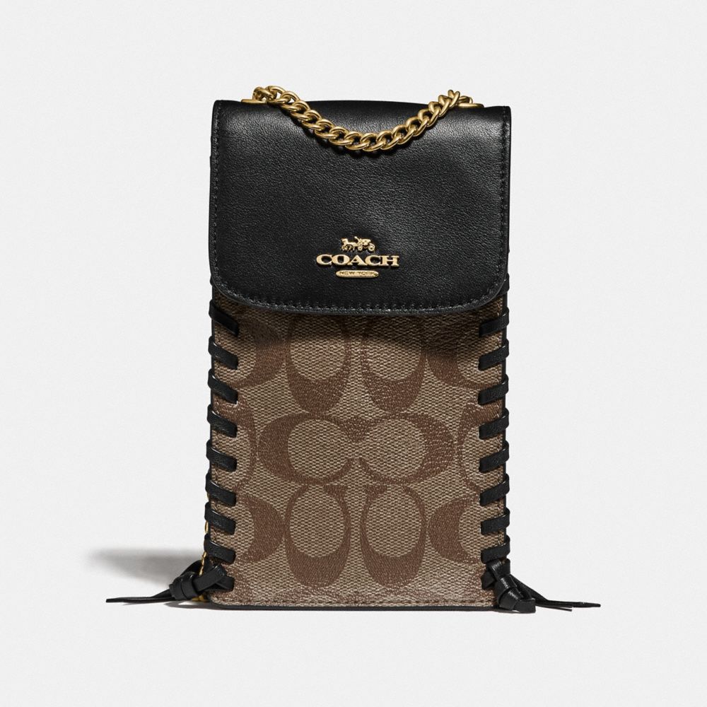 NORTH/SOUTH PHONE CROSSBODY IN SIGNATURE CANVAS WITH WHIPSTITCH