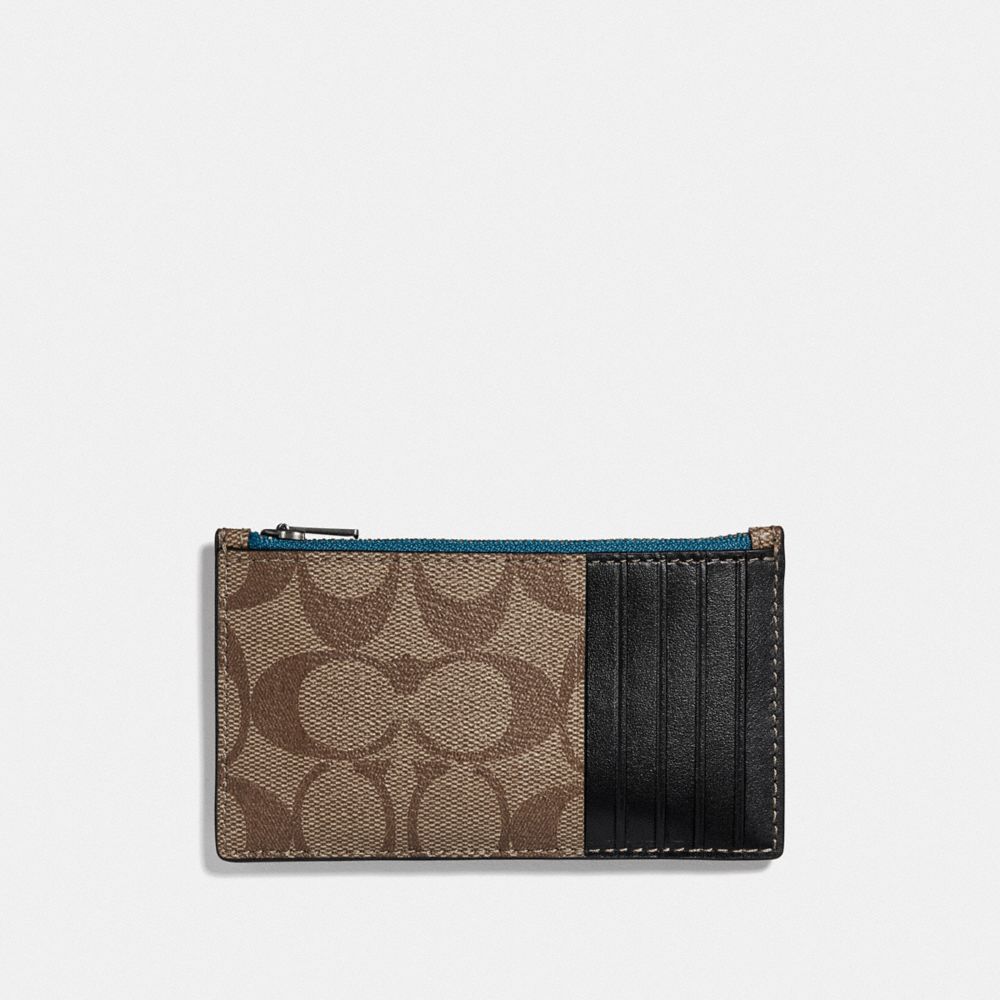 ZIP CARD CASE IN SIGNATURE CANVAS WITH COACH SCRIPT