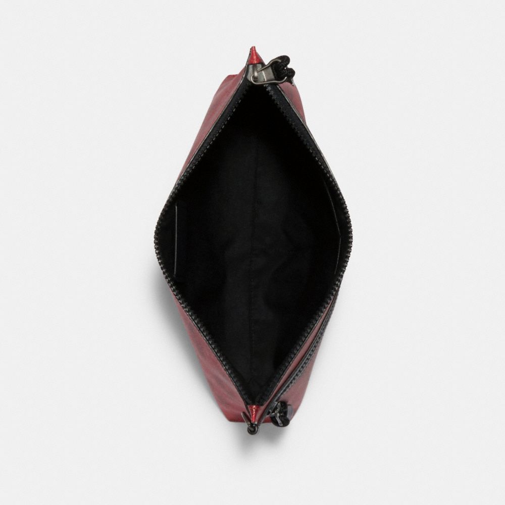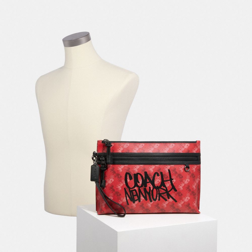 Printed coated canvas with refined calf leather details| Inside multifunction pocket| Zip-top closure, fabric lining| Outside zip pocket| Detachable wrist strap| 11 1/2" (L) x 8 1/4" (H) x 2 1/4" (W)| Featuring the graphics of artist and graphic designer Jay Shells