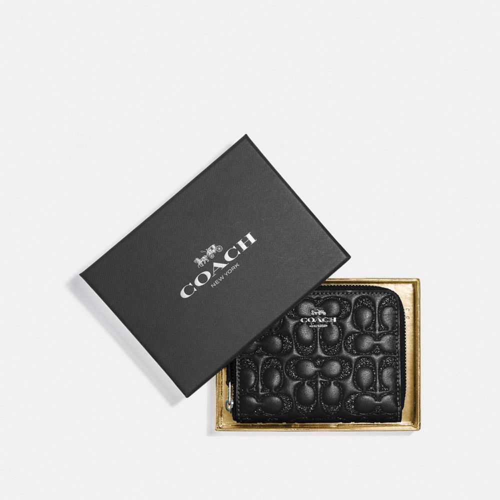 Signature smooth leather| Two credit card slots| Bill compartment| Zip coin pocket| Zip-around closure| Outside slip pocket| 4 1/2" (L) x 3 3/4" (H) x 3/4" (W)| Packaged in a Coach gift box