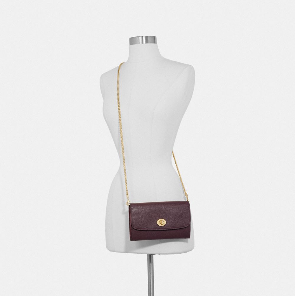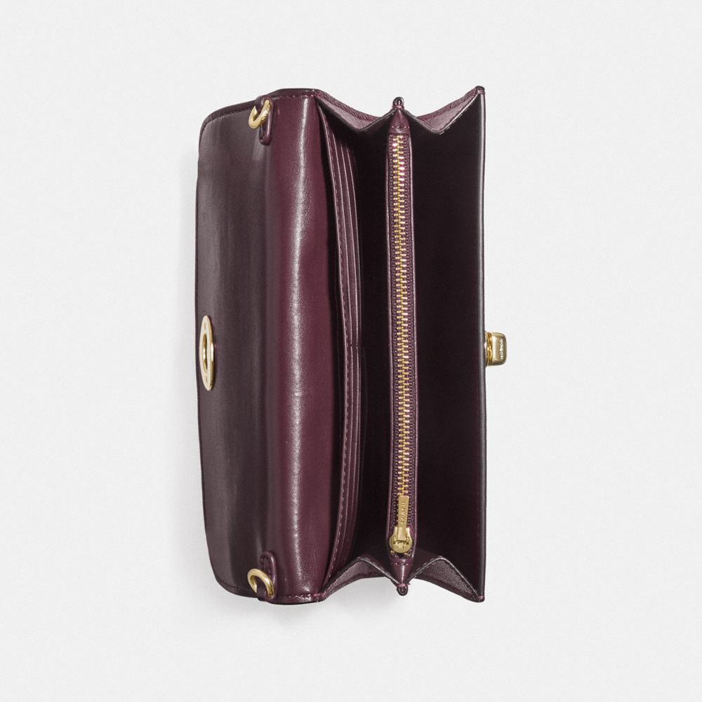 Crossgrain leather| Ten credit card slots| Full-length bill compartment| Inside zip compartment| Turnlock closure, fabric lining| Detachable wrist strap| Outside slip pocket| Detachable long strap with 22" drop for shoulder or crossbody wear| 8" (L) x 5" (H) x 3/4" (W)