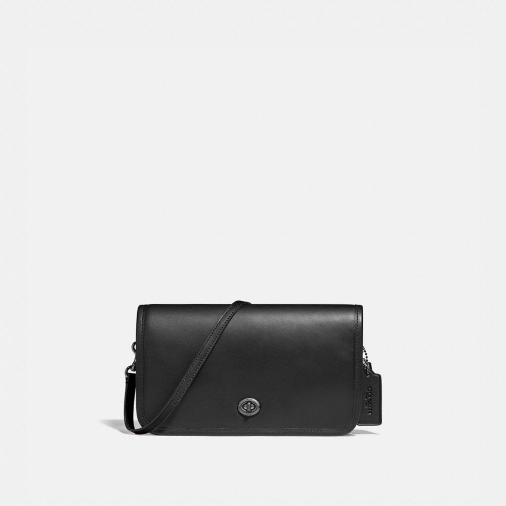 Glove calf leather| Inside open pockets| Turnlock closure, fabric lining| Outside slip pocket| Detachable strap with 23 1/2" drop for shoulder or crossbody wear| 9" (L) x 5" (H) x 2 1/4" (W)