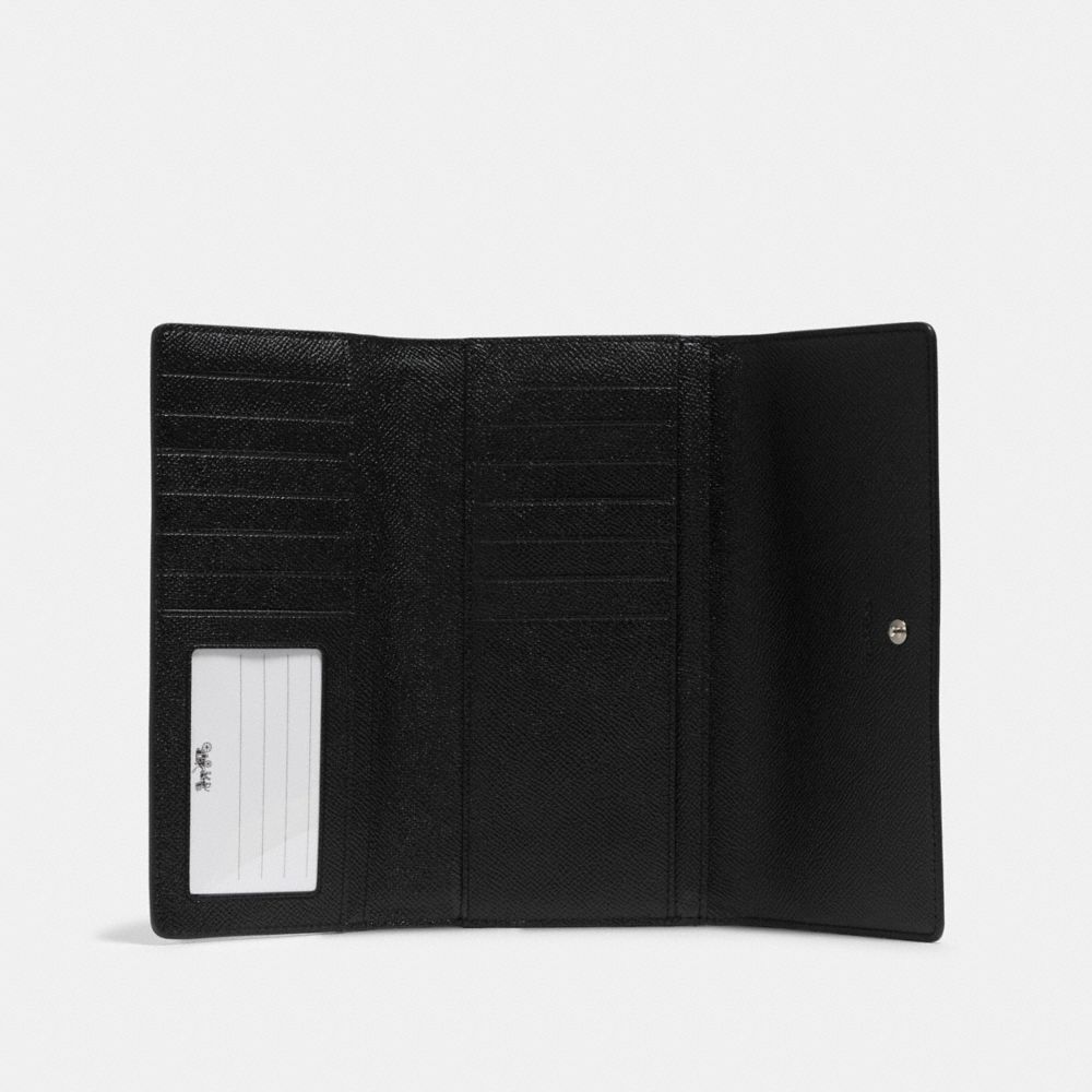 Crossgrain leather| Thirteen credit card slots| Full-length bill compartment| ID window| Snap closure| Outside zip coin pocket| 7 3/4" (L) x 4 1/4" (H)