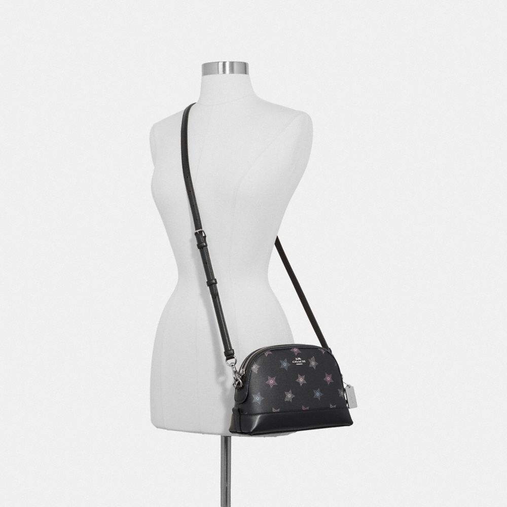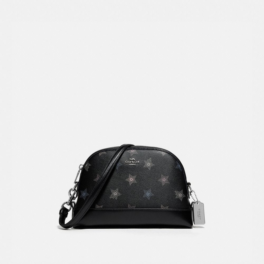 Printed coated canvas and smooth leather| Inside multifunction pocket| Zip closure, fabric lining| Detachable strap with 21 1/2" drop for shoulder or crossbody wear| 9 1/2" (L) x 6 1/2" (H) x 3 1/4" (W)